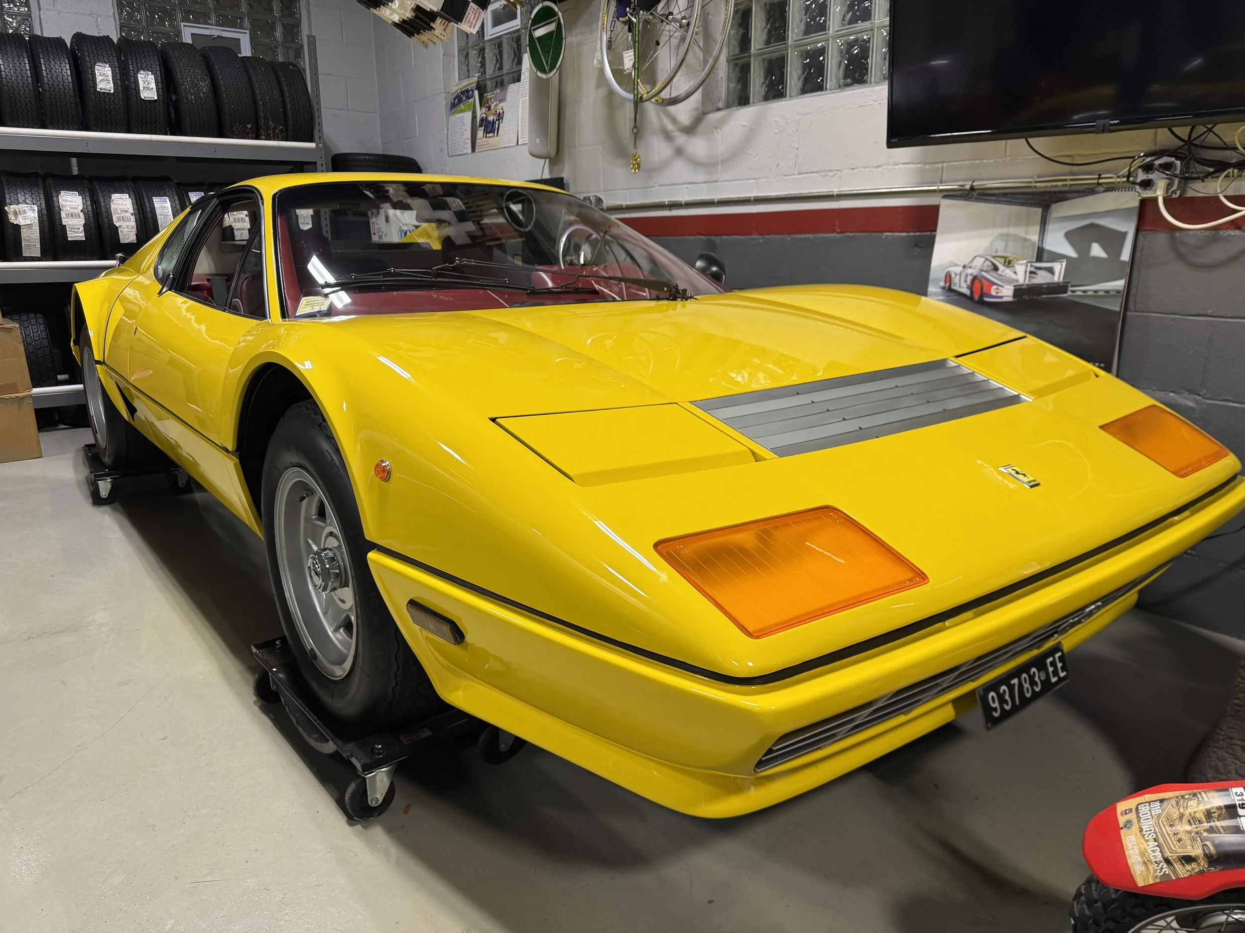Ferrari 512 BB – Unlike most of its kind, which were painted in two-tone schemes, Joey’s car left the factory in solid yellow over a blood-red interior. The original paint has spider cracks, the leather carries the sweet smell of age, and yet its imperfections make it more beautiful — a true survivor.