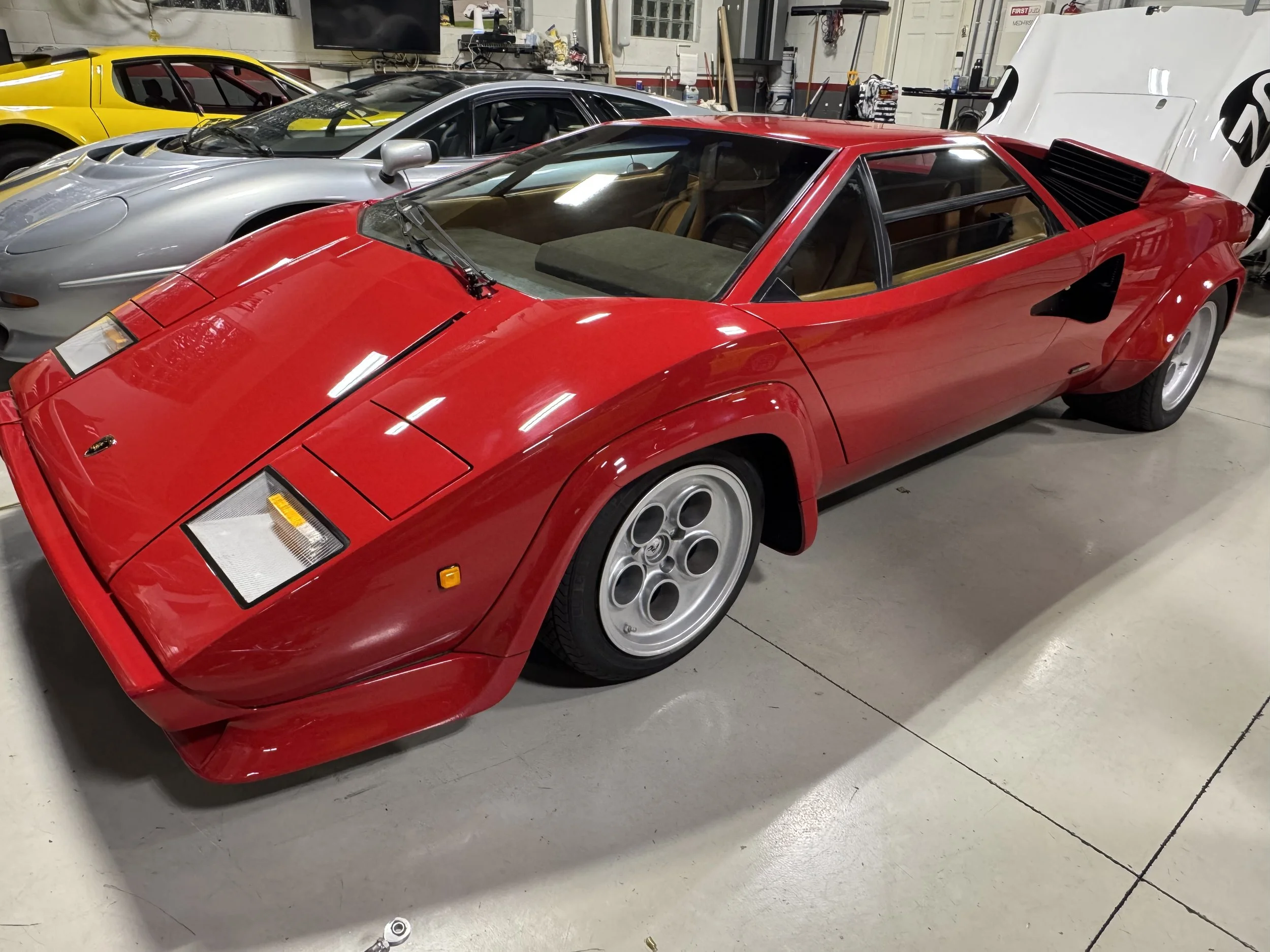 Lamborghini Countach – The crown jewel. Purchased new by Joey’s father, it has lived its life entirely within the family. Fresh from a meticulous four-year restoration, the angular red wedge sits on rare cylindrical wheels, stripped of the clumsy U.S. bumpers that mar so many examples. For Jacob, riding shotgun in this car with his dad remains one of his earliest and sharpest memories.